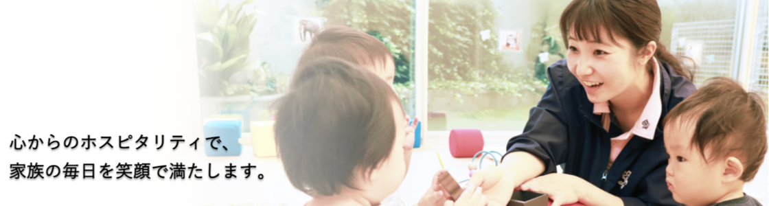 | 事業内容 | 認可保育所・東京都認証保育所・自治体受託事業、都型学童クラブ、サービス付き高齢者向け住宅、 小規模多機能型居宅介護、訪問介護・居宅介護支援、訪問看護など |