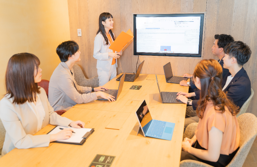 GMOインターネットグループ全体アワードでナンバーワンになった代表藤﨑をはじめとして、業界歴の長いベテランリーダーから受け継がれたノウハウを業務を通じ最速で学べます。創業からインサイドセールスを武器にしており、入社最速(7ヵ月間)でリーダーへ昇進したメンバーが率いる、平均年齢26才の若々しく活気のある会社です。
