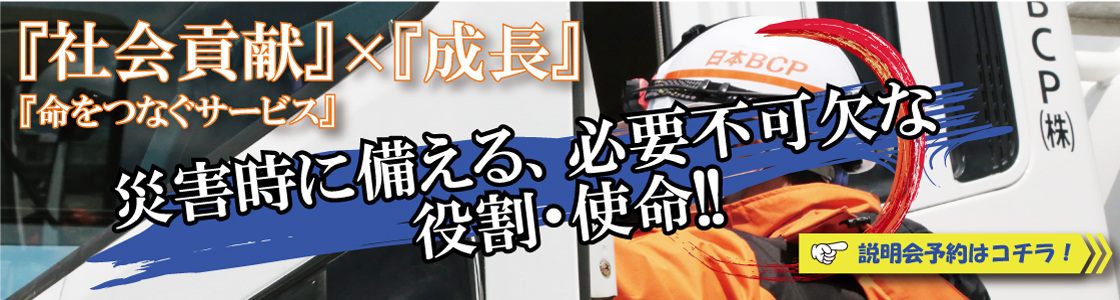 当社の事業がスタートしたきっかけは2011年に発生した東日本大震災。内閣府からの緊急要請を受け、灯油巡回販売中の車両を数台、岩手県に向かい、約3ヶ月間、被災地復興のために活動。「命をつなぐ」燃料である石油の備蓄の配送を専門で行うBCP事業を立ち上げました。現在、タンクローリー400台、全国110カ所に備蓄タンクを保有し、契約をいただいた企業の「安心」を支えています。大手企業との取引も増え、事業も発展。今後も災害大国と呼ばれている日本において防災・減災を実現する企業として社会に貢献していきます。