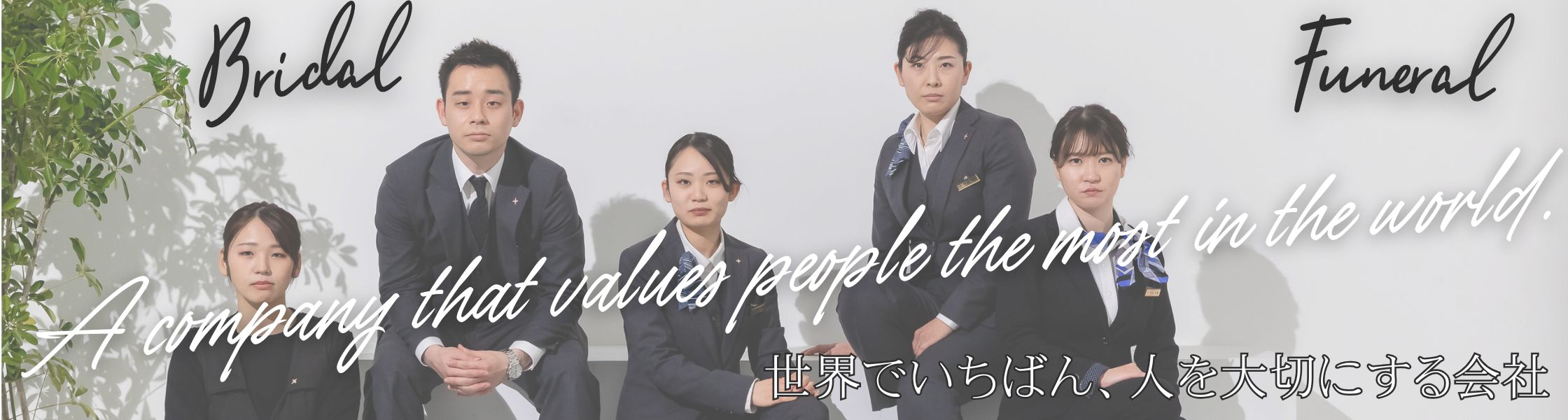 | 事業内容 | 人と人が関わる事業を根幹とし、現在は結婚式、葬儀をはじめ冠婚葬祭セレモニー事業、ドレス、ビューティ事業、互助会、会員管理事業等を運営するサービス業の会社です。 |