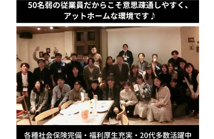 当社は従業員約50名ほどだからこそ、一人ひとりの顔が見えやすく、互いに尊重し合い、意見が自由に言え合える環境です。まだまだ若い会社であるため、社員のチャレンジスピリットもとどまるところを知りません。仕事をすることの難しさや煩わしさを時に忘れて、挑戦することの楽しさを感じられる社風「顧客の笑顔を作る」ことを忘れずに、日々チャレンジし続けています!