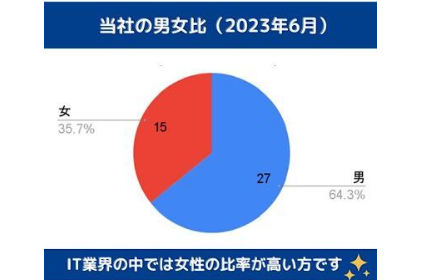 | 技術者男女比 | 男性64%、女性36%(2023年9月現在) |