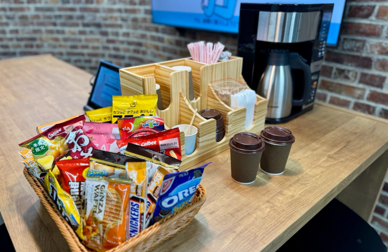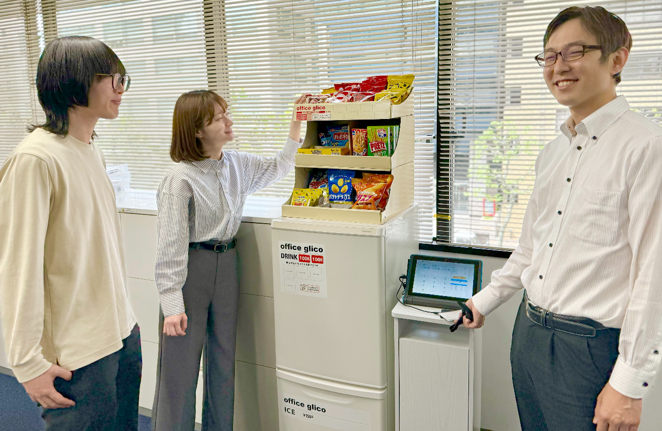 スナックからドリンク、アイスクリームまで取り揃えており、現金不要の給与天引きで気軽に空腹を満たせます。