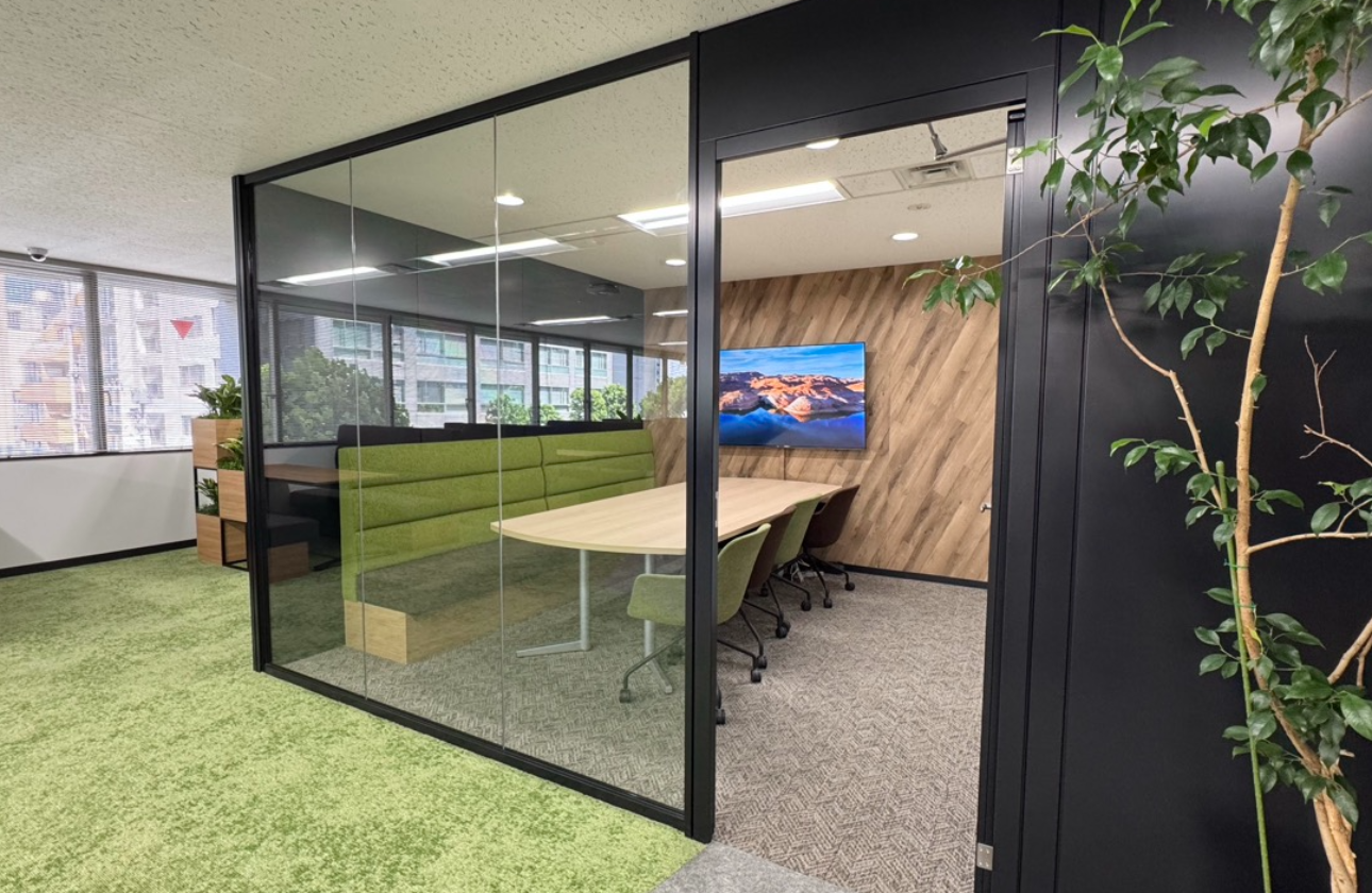 ガラス張りで開放的なカンファレンスルームは、壁の一面がホワイトボードになっており、オープンなディスカッションに最適な空間です。