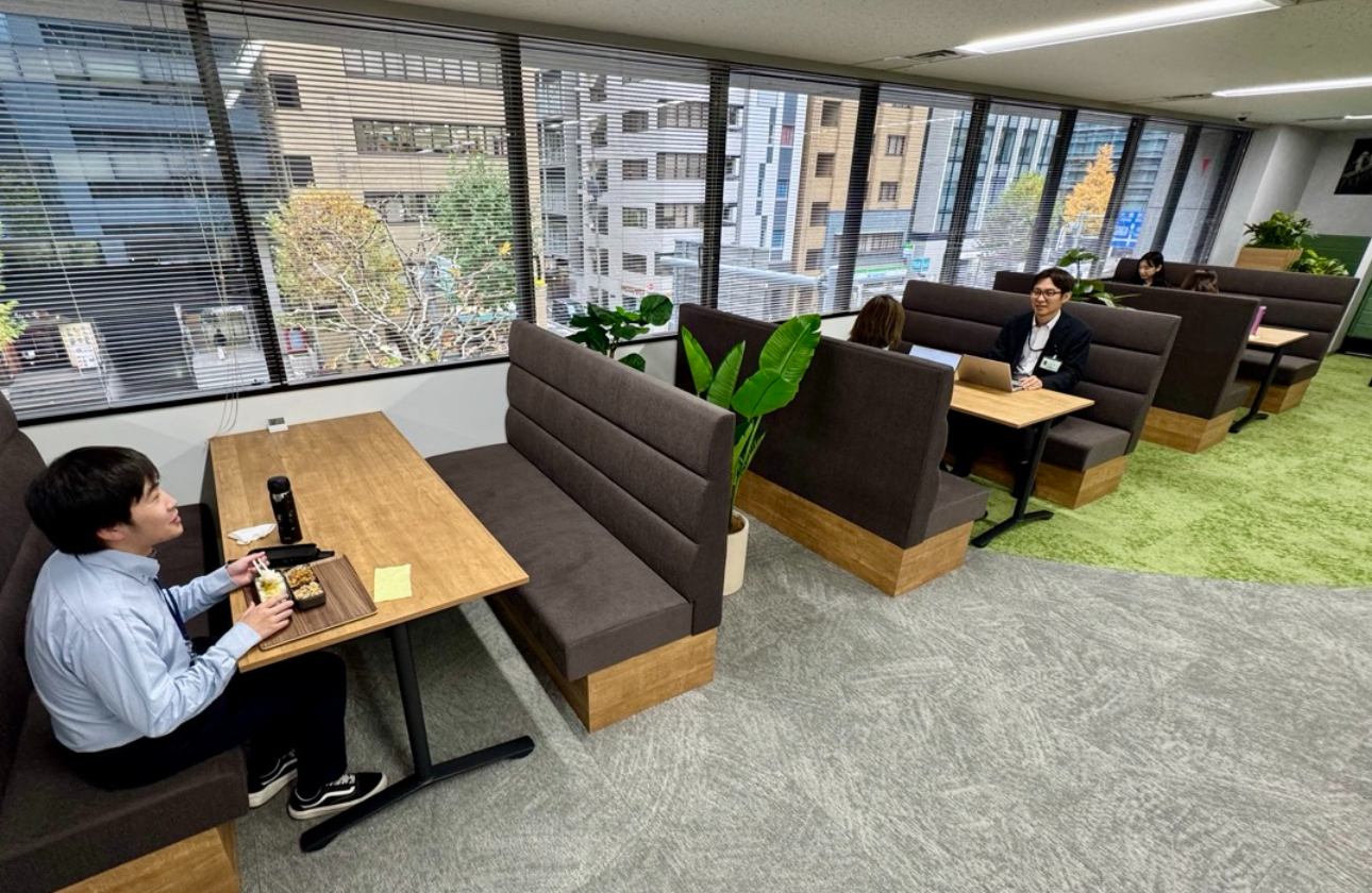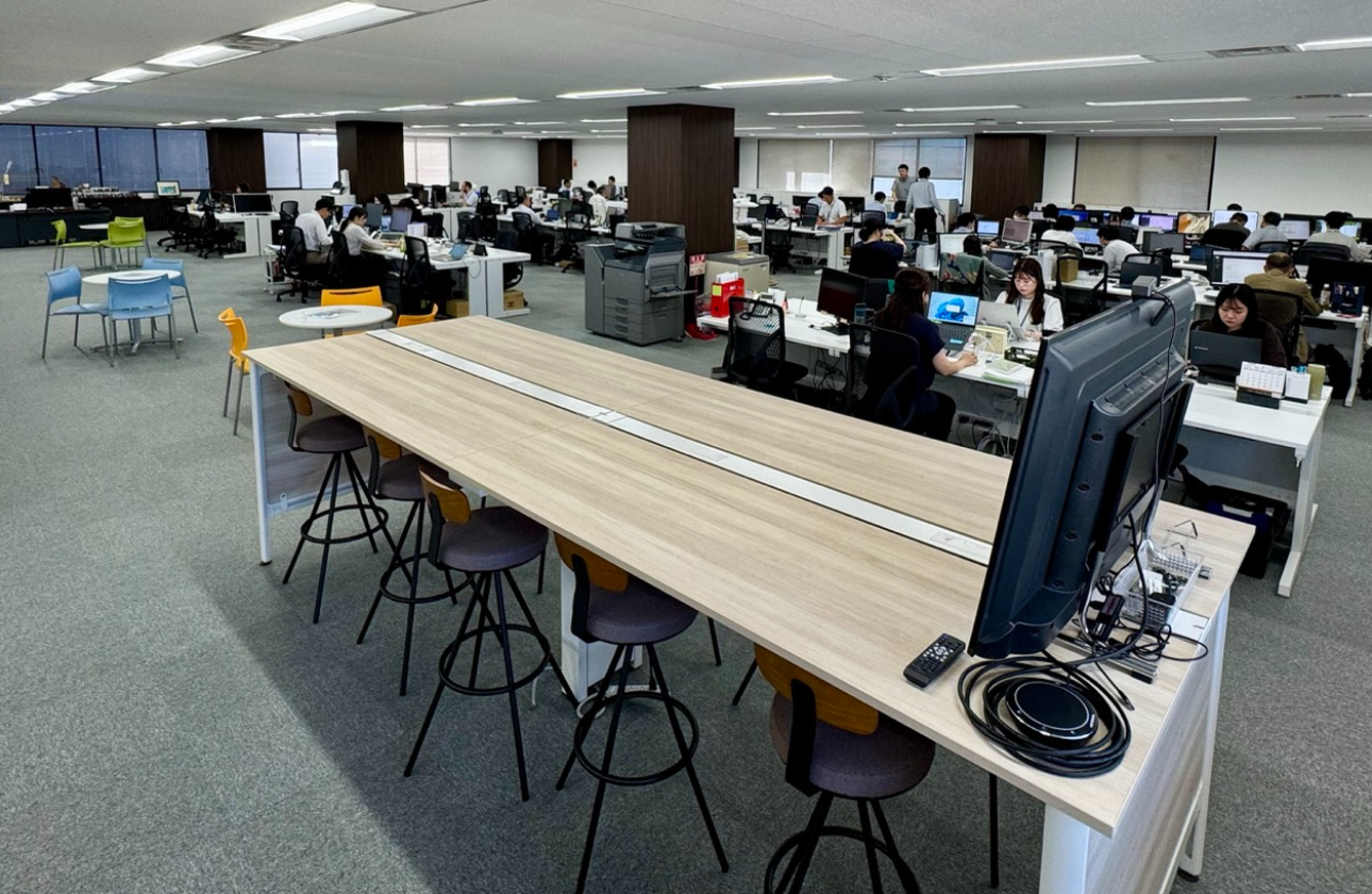 フロア内は全体が見渡せるワンフロア設計で、社長の執務スペースも壁で仕切らず、誰もが気軽に相談や声かけができる風通しの良い環境です。