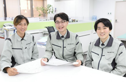 | 募集職種 | (1)施工管理職<土木・設備>(2)配管技能職(3)設計積算職 |