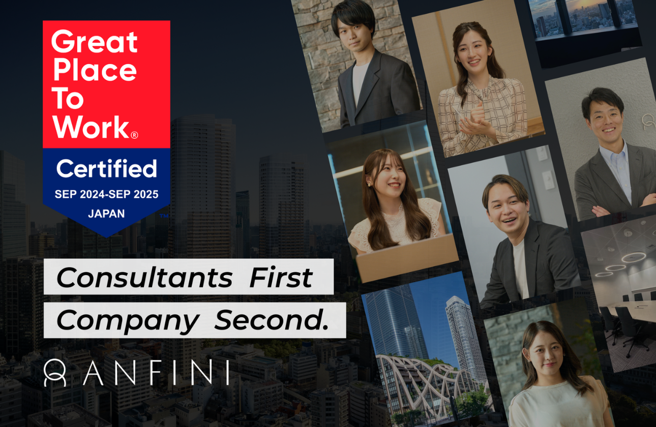 Anfiniは「コンサルタントの幸福と成長を最優先にする」という理念のもと、常に時代の先を見据え、変革をリードし続ける総合コンサルティングファームです。祖業であるコンサルティングを起点に、Anfini Agency・Brand・Community・Digital・Educationといった多角的な事業を展開し、創業以来、年平均成長率180%というスピードで進化を遂げています。