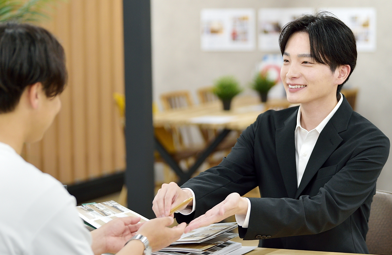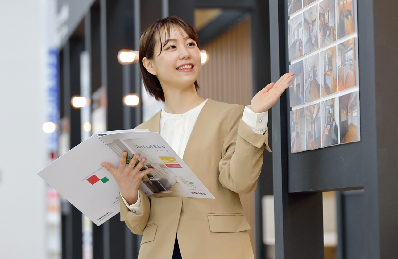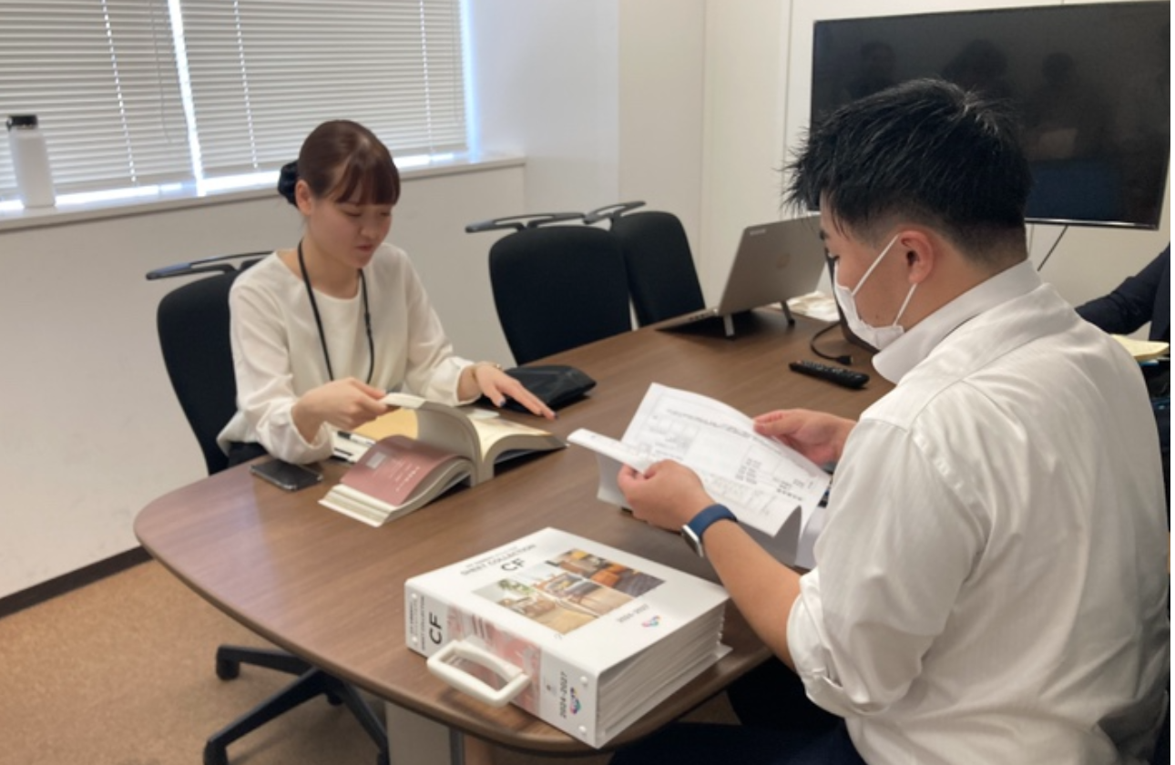 自社ショールームに来店されたお客様の対応を行います。まずはお悩みや要望等、どの様なリフォームを希望しているかヒアリングし、展示商品を見ながらプランの方向性を話し合います。