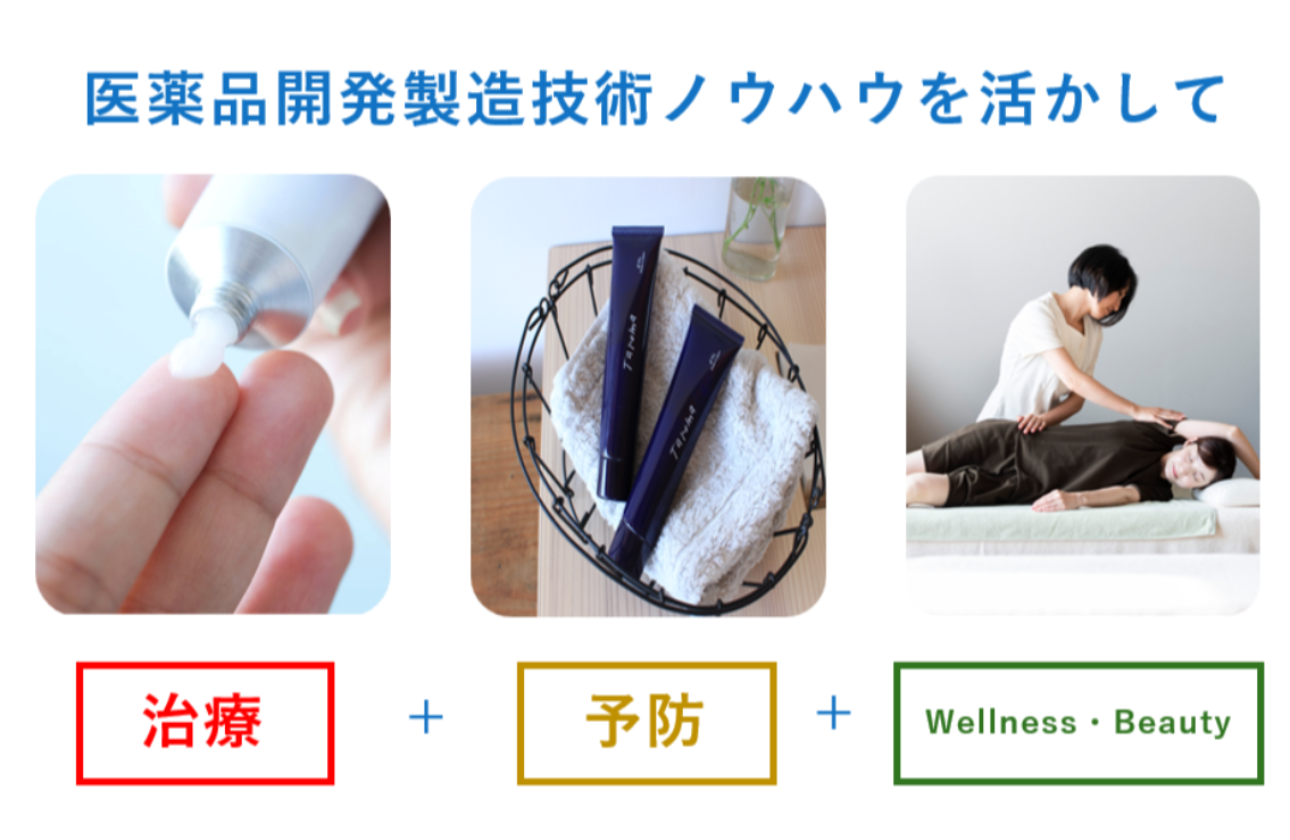 パップ剤の製造から始まり、軟膏剤等の外用剤を中心に研究開発及び自社製造を手がけてきました。ジェネリック医薬品とOTC医薬品の研究開発、そして外用剤分野のあらゆる剤型の自社製造を、少量・多品種で対応できるのが強みです。