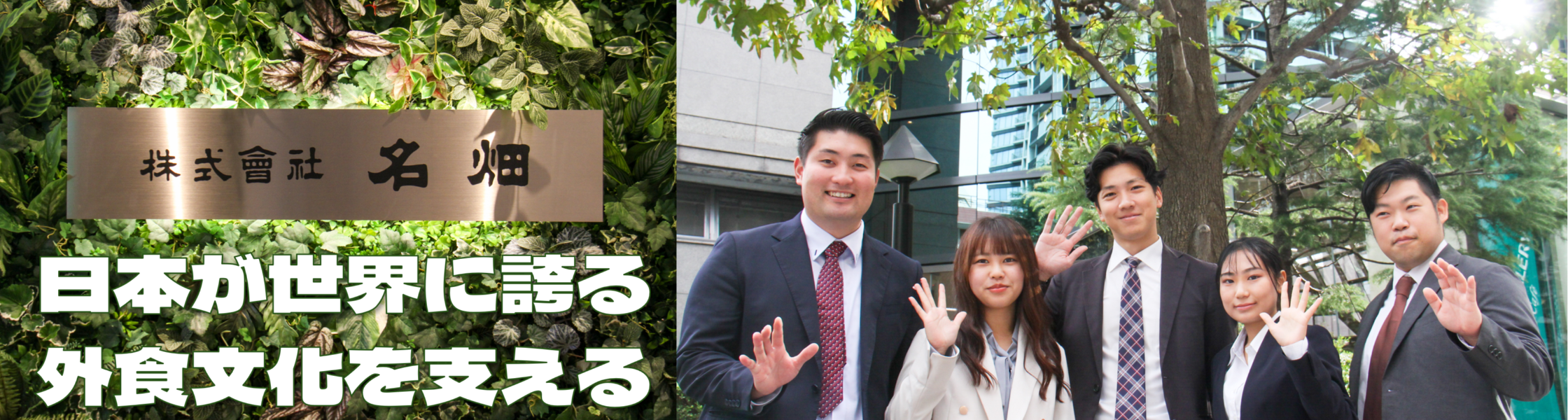 名畑は設立以来、飲食店様のお役立ちに立ちたい、素晴らしい外食の文化を発展させたいという思いで、酒類の取り扱いからスタートし、食品、業務用資材、メニュー開発、従業員