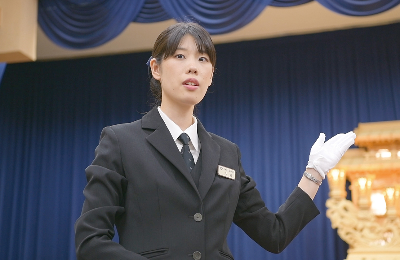葬祭部門で活躍する若手社員の言葉です。葬儀や法要という人生の節目に深く関わり、地域の方々に寄り添う仕事。感謝の言葉を直接いただけることが、大きなやりがいにつながっています。
