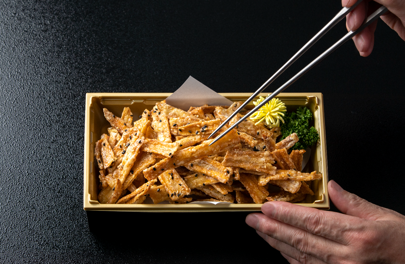 地元産の食材を活かし、葬儀や法要、会合、宴席などさまざまな場面の食事を手がけています。長年親しまれてきた名物「たたきごぼう」など、伝統を受け継ぎながら、「料理を通じて“ありがとう”と“おいしい”をつなぐ」仕事です。