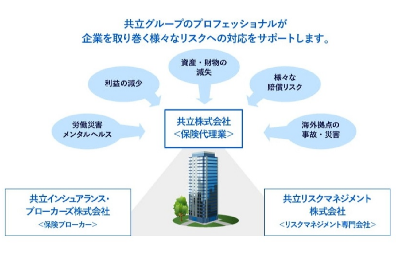 共立グループは、企業保険のプロフェッショナルとして、長年の経験と高い専門性を背景に、企業のリスクマネジメントに保険を軸としたソリューションを提供します。