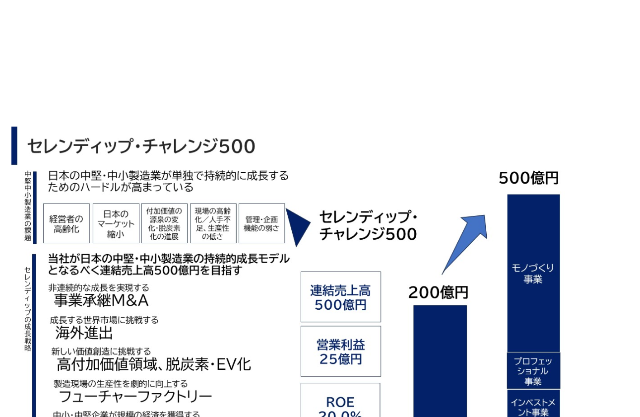 弊社では、事業承継をはじめとした課題を抱える中小企業へプロ経営者を派遣し、M&Aと金融、そしてITやAI活用を含めた経営ノウハウによって課題を解決し、「日本のモノづくりを牽引する100年企業の創造」を進めています。