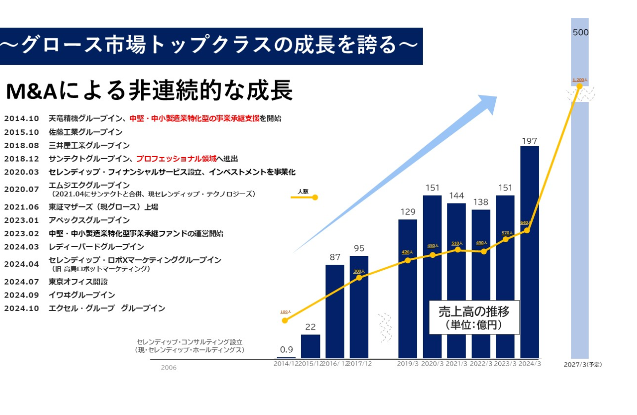 ファンドとは違い売却を前提としておらず、M&Aで株式を取得した会社の経営を改善しており、過去M&Aを実行した会社は2桁%以上の成長を遂げています。