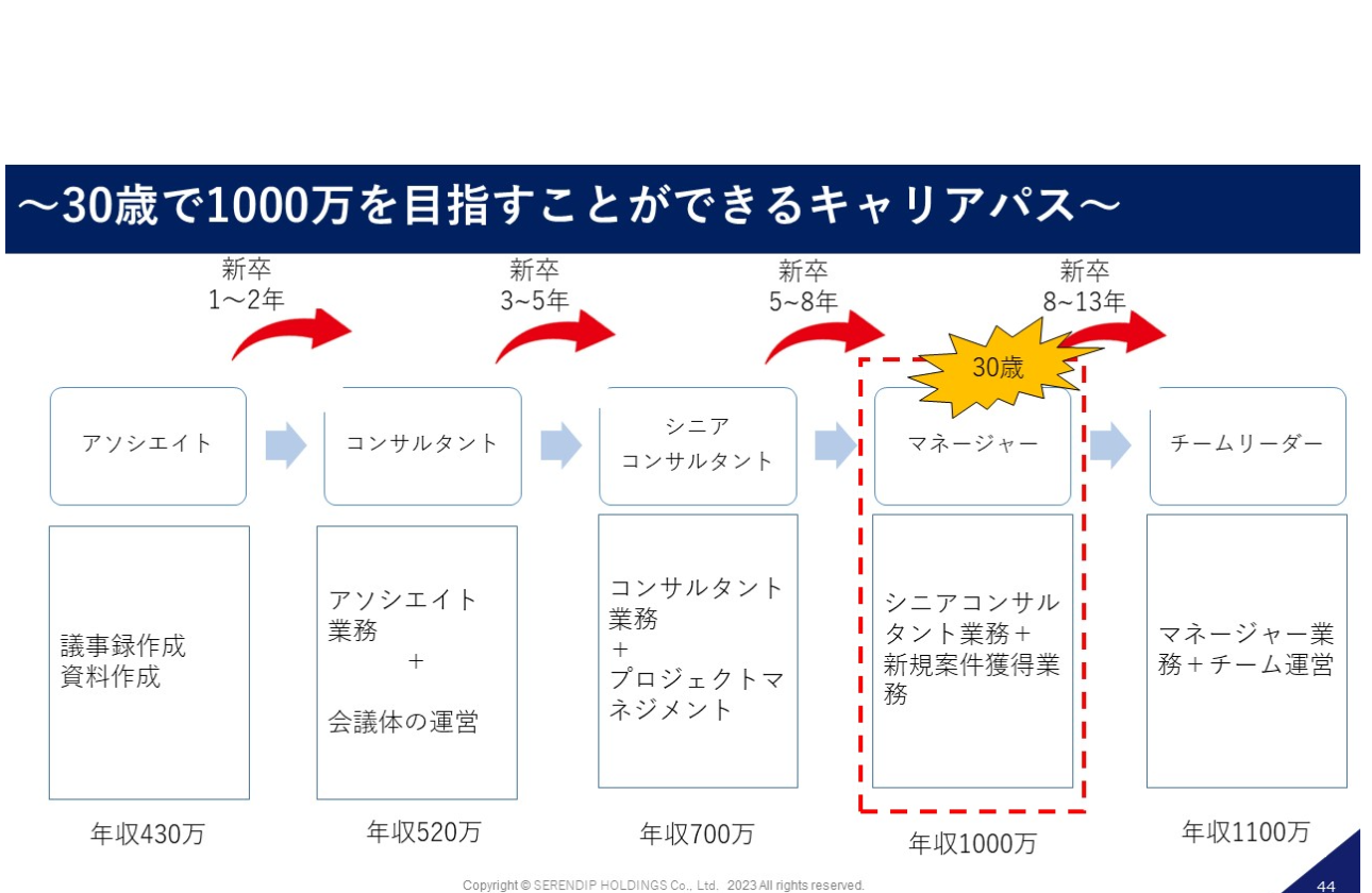 今後も多くの企業をM&Aによるグループインを前提としており、将来的に多くの経営陣が必要となります。30代前半で経営陣として邁進している社員も在籍し、より多くより早く意思意欲のある成果を出した人材にはチャンスを与えることを約束します。