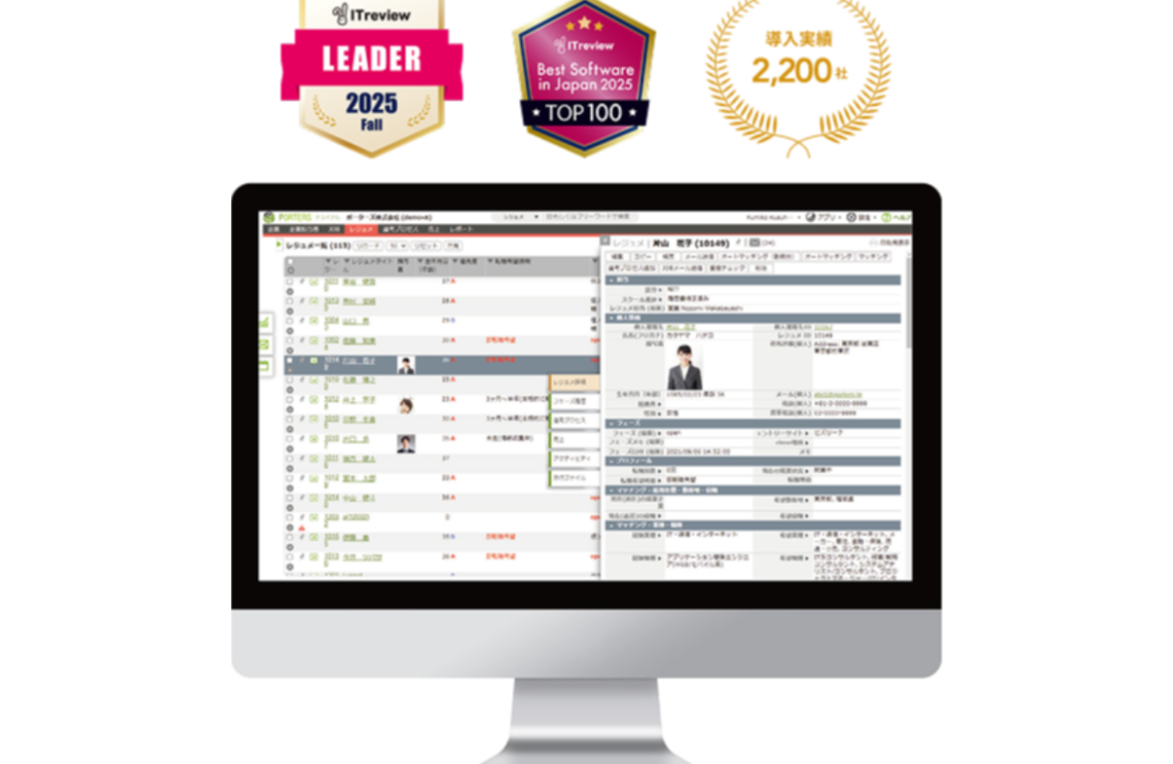 | 事業内容 | 人材ビジネス向けクラウドサービスの開発・提供、人材ビジネス向けクラウドサービスの導入支援コンサルティング、人材戦略支援マガジン「PORTERS MAGAZINE」の発行・運営、有料職業紹介、労働者派遣会社向けのクラウドサービスの提供 |