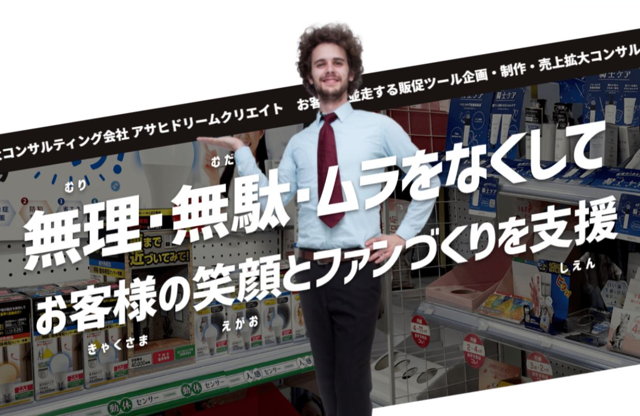 アサヒ・ドリーム・クリエイト株式会社は、販促ツールの企画・デザイン・製造から展示会設営までを一貫して手がける企画会社です。
