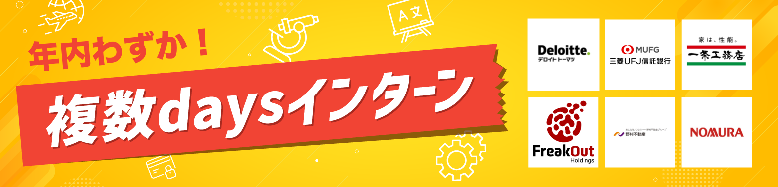 まだ申し込みが可能な複数daysインターンの募集を厳選!秋冬インターン情報をお見逃しなく!