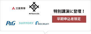 商社、メーカー、IT等で活躍するビジネスプロフェッショナルによる講演を通じて、キャリアや仕事を実際に知ることができます。