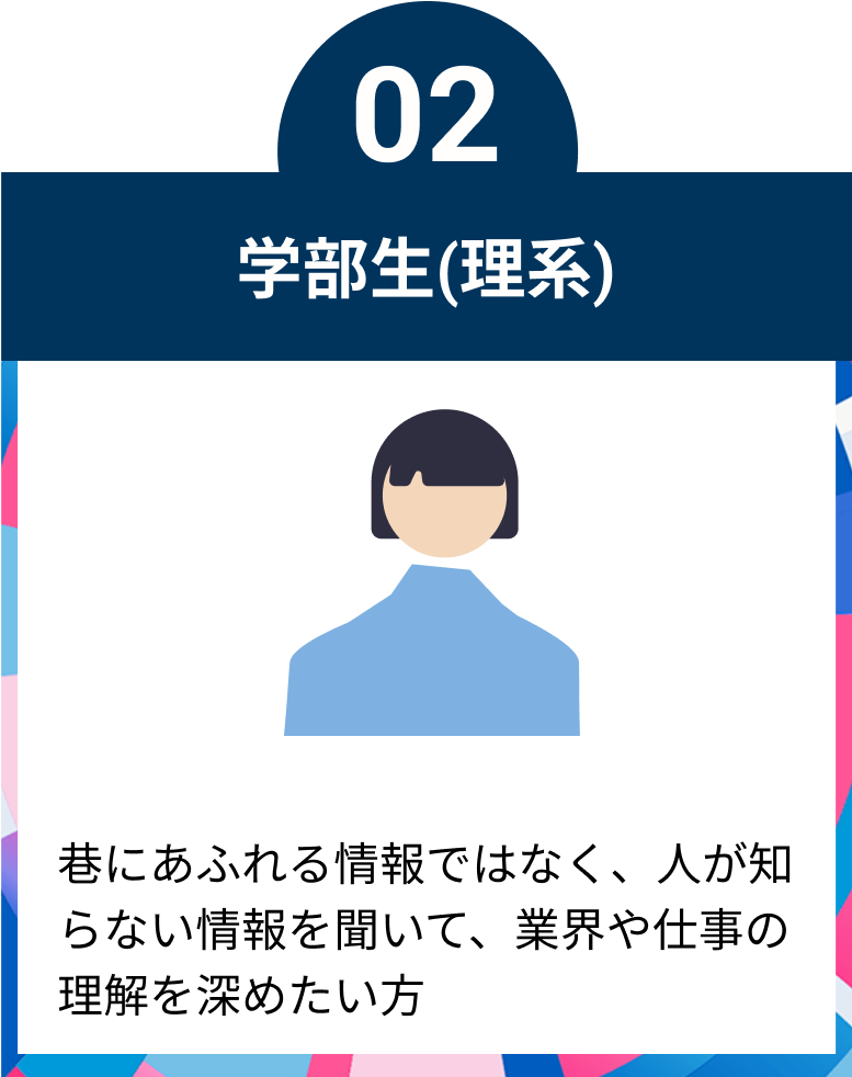 - ① 少しでも気になる企業の業務内容やカルチャーを知ることから始めること