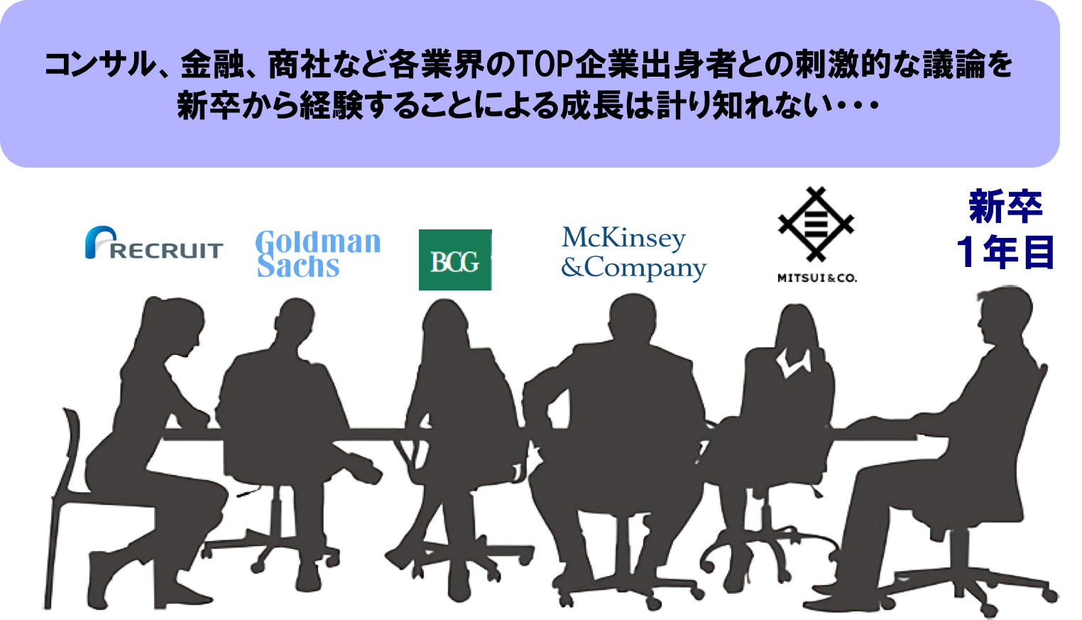 コンサル・メーカー・商社・金融etc.どの業界に決めて良いのか、自分の適性が分からない学生の方も多いことでしょう。エムスリーは各業界のTOP企業出身者が在籍しているので、入社後、超一線級のビジネスパーソンと一緒に仕事が出来る環境があります。