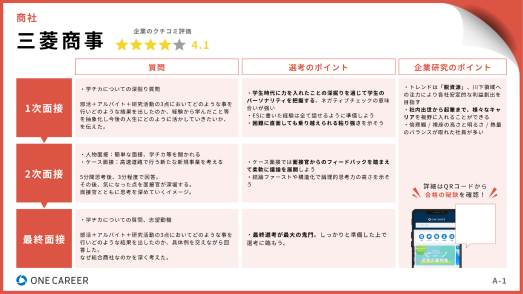 ワンキャリアは、国内最大級の就活対策サイト。 企業研究から、エントリー、エントリーシート、面接、内定後の入社検討まで、就活におけるすべてのステップにおいて、役立つ情報やクチコミを提供しています。50万件を超える「先輩のリアルな声」を、どうか就職活動に役立ててください。すべての就活生が、自信と希望を持てるよう、全力で支援したいと思います。