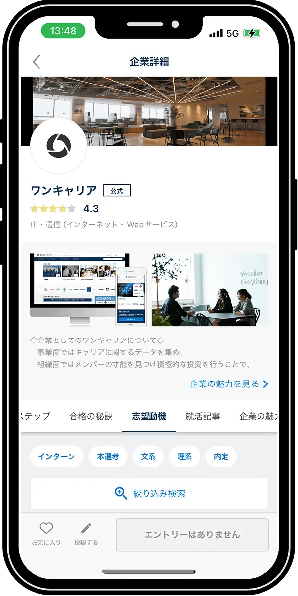 ワンキャリア(ONE CAREER)は、新卒採用向けの求人メディア、就活対策サービスです。企業情報や学生の口コミ、ES掲載など、就活全般で活用できる情報を掲載しています。