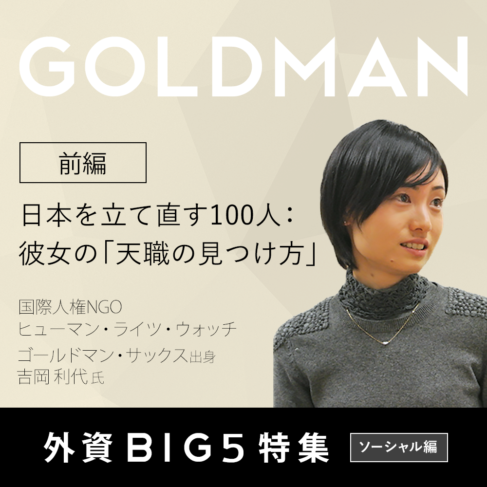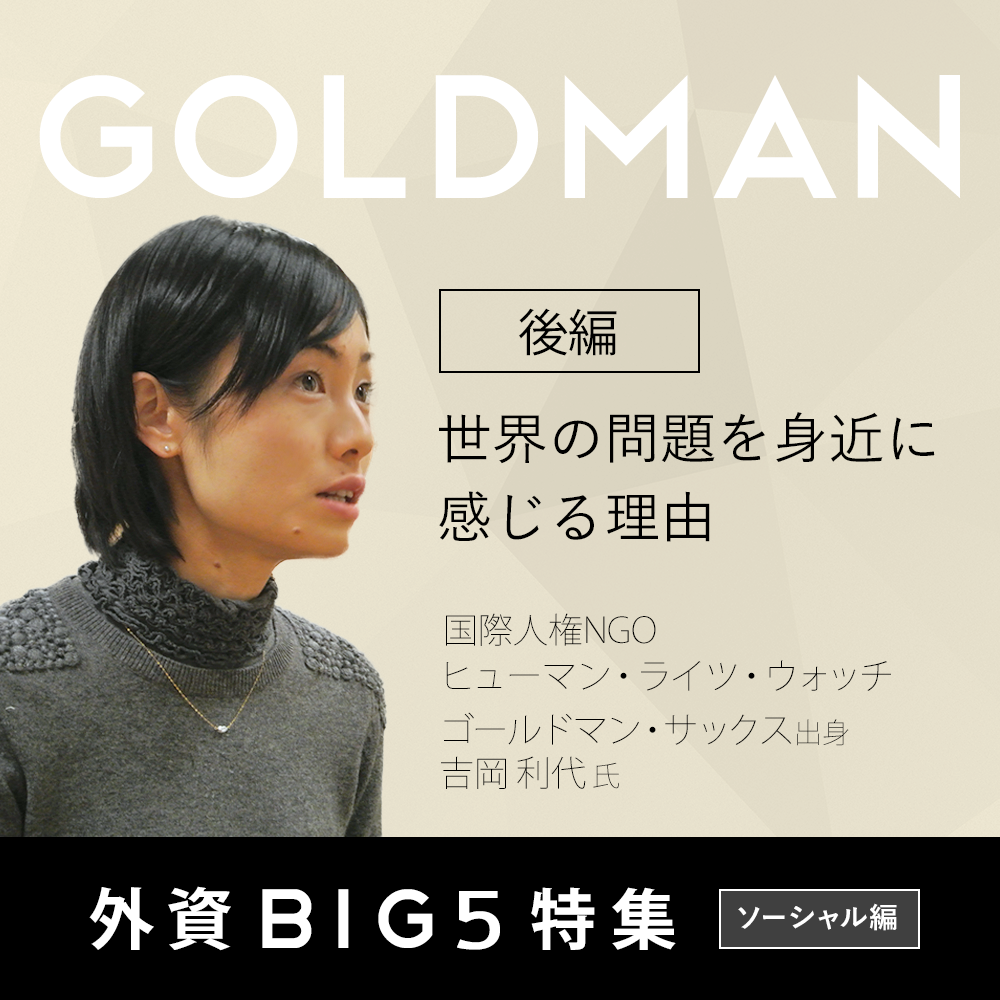 前編はコチラ:ゴールドマン出身・吉岡氏:「金融業界での経験がなければ、今の自分はない」彼女が今、ソーシャルで働く意義に迫る(前編)「外資BIG5特集」の第4弾は、世界的人権NGOヒューマン・ライ... -