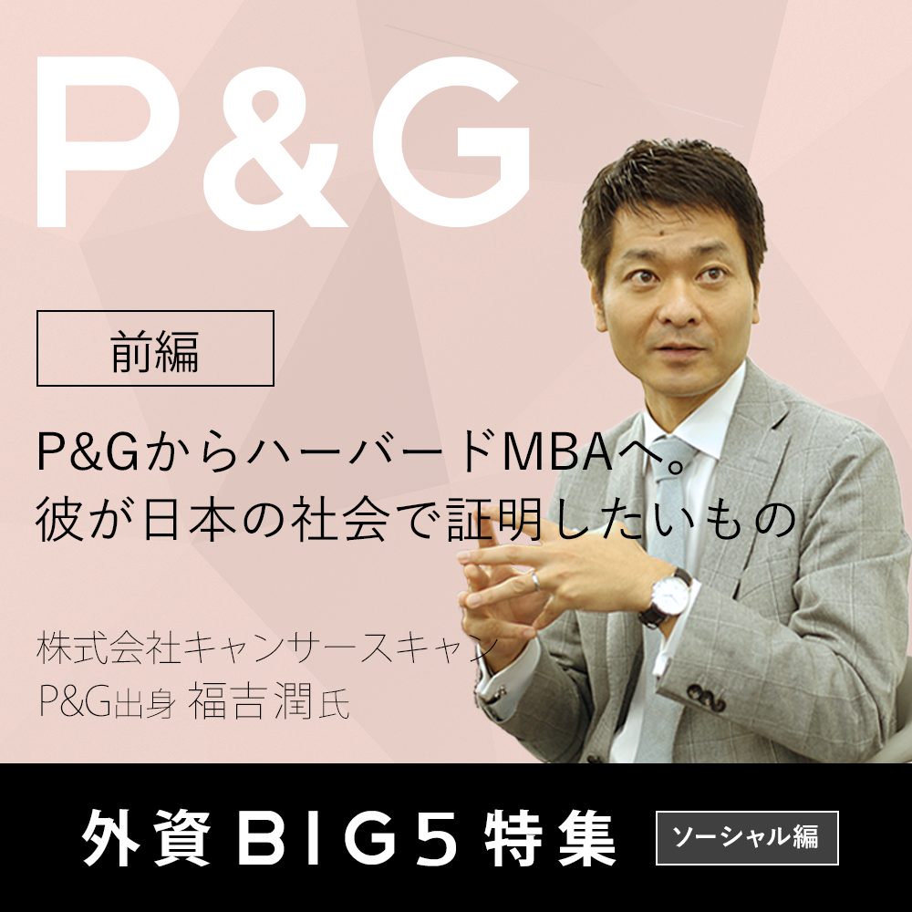 「外資BIG5特集」の第5弾は、株式会社キャンサースキャン 代表取締役 福吉潤氏へのインタビュー。前編では、P&GからハーバードMBAを経て、彼が日本の社会において証明したいと願う「社会... -
